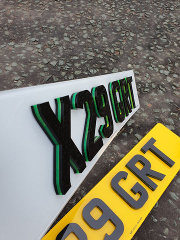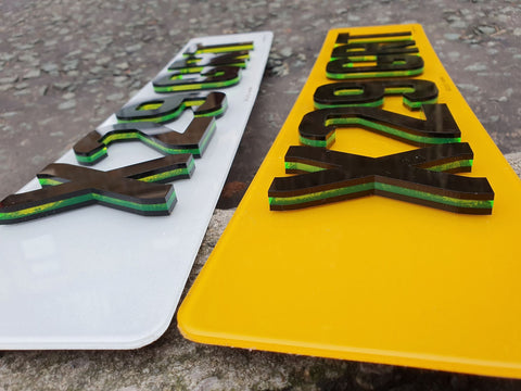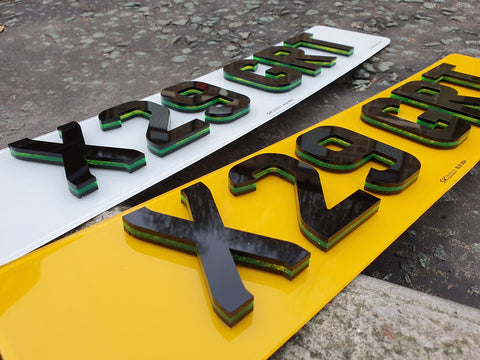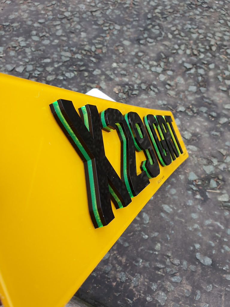 Gloss, Satin Black or Carbon Laser cut 3D Acrylic Letters with Lime Blast colour